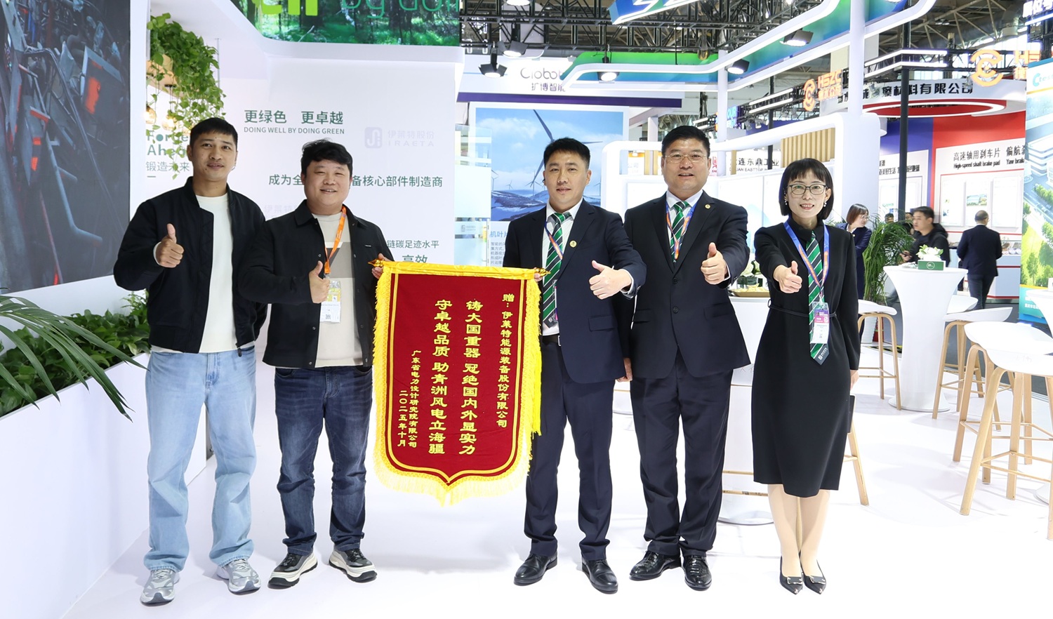 中国能建广东省电力设计研究院,为伊莱特送来“锻大国重器,助青洲风电立海疆”的锦旗。这是对伊莱特在风电核心部件交付效率和交付品质方面的极大肯定,也是双方长期合作、共同发展的见证。