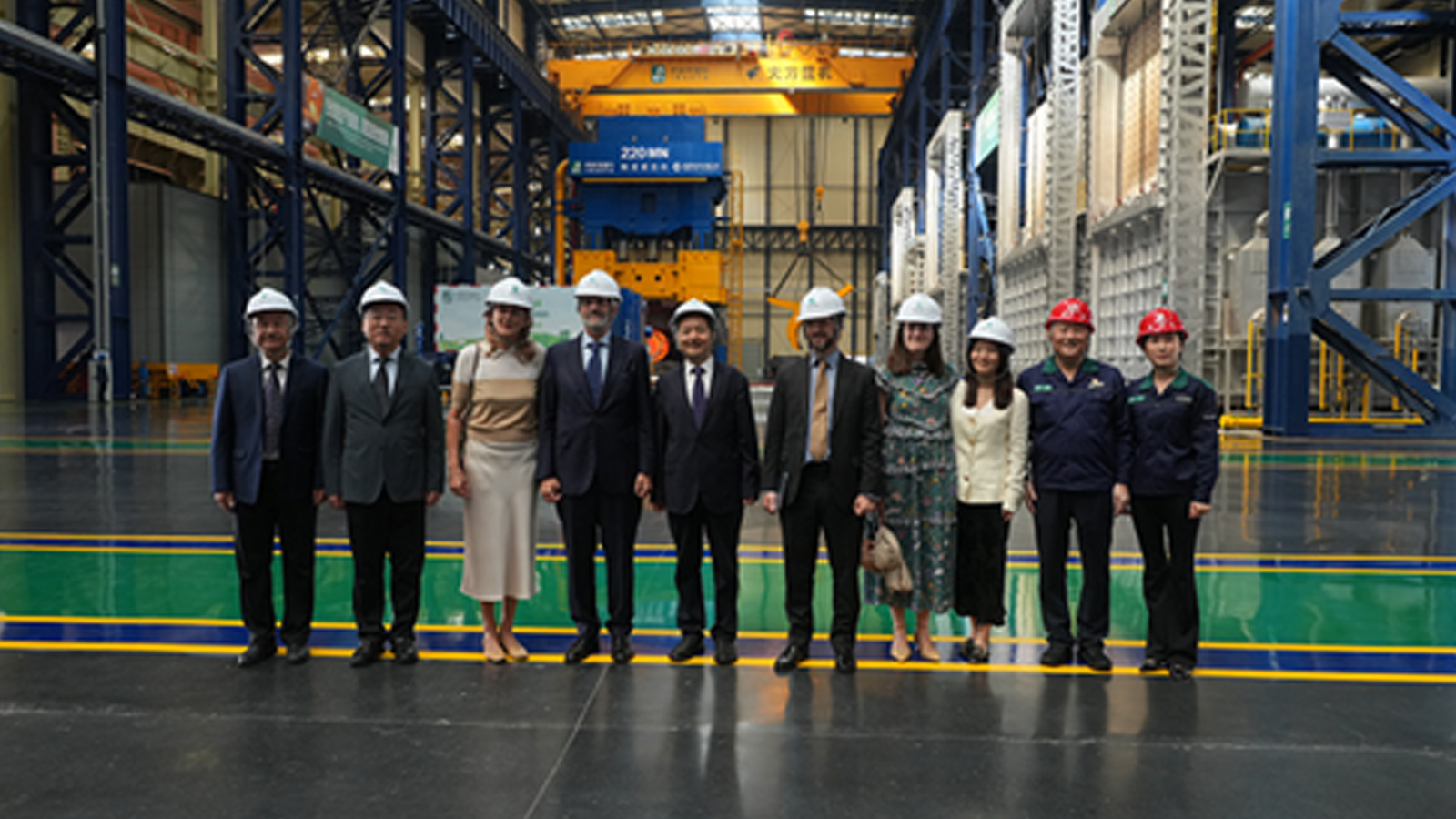 2025年9月25日,贝坦索斯大使(左起3)访问伊莱特,出席超大装备核心部件事业部投产活动