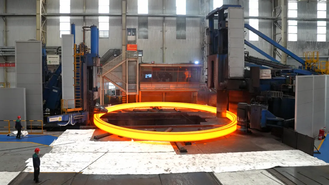 2. 更优化的表面硬度与心部韧度:锻环表层因直接受到轧辊的作用力,金属流线更加密集且平行于表面,心部金属则在径向压缩下向两侧延展,这种 “表层密集 - 心部发散” 的梯度结构,即增强了锻件的表层硬度,又保留了心部韧性,几乎完美满足了大型回转支承的要求。